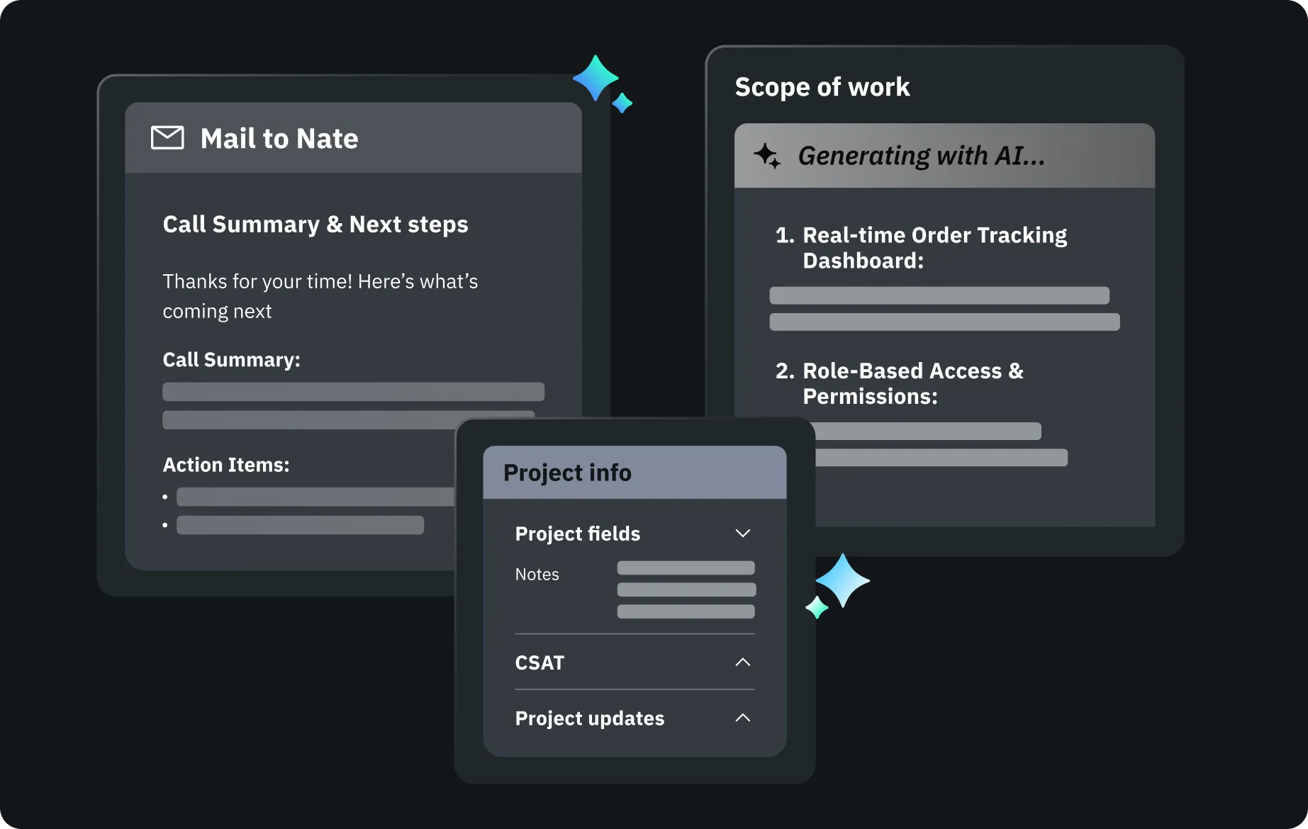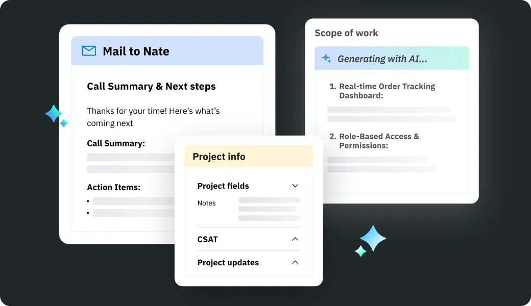 Auto-convert call recordings into structured project docs, emails, and next steps. Save 10+ hours a week and keep clients aligned.