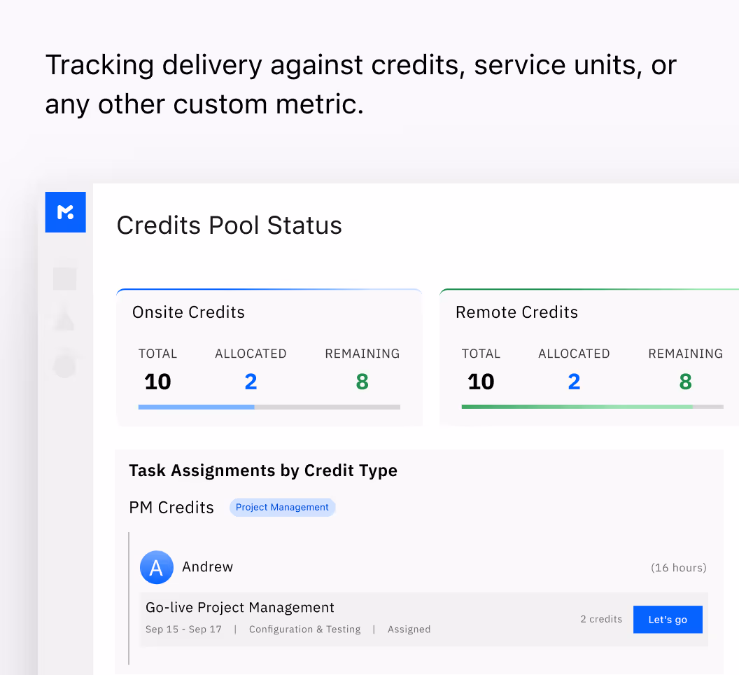 Delivery looks different in every company. Some teams build approval flows into how work moves forward. Others rely on bespoke reports for the metrics that matter most. Many track work against credits or service units to define scope.
