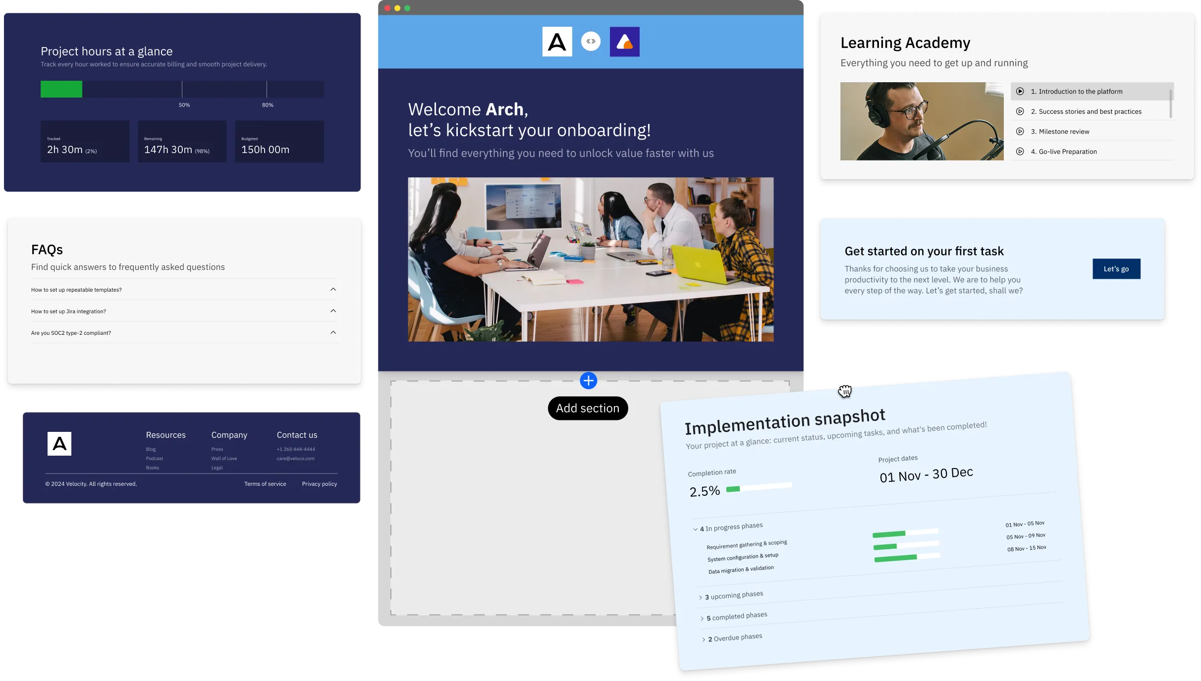 Give clients a premium experience and complete project visibility with a completely customizable portal.