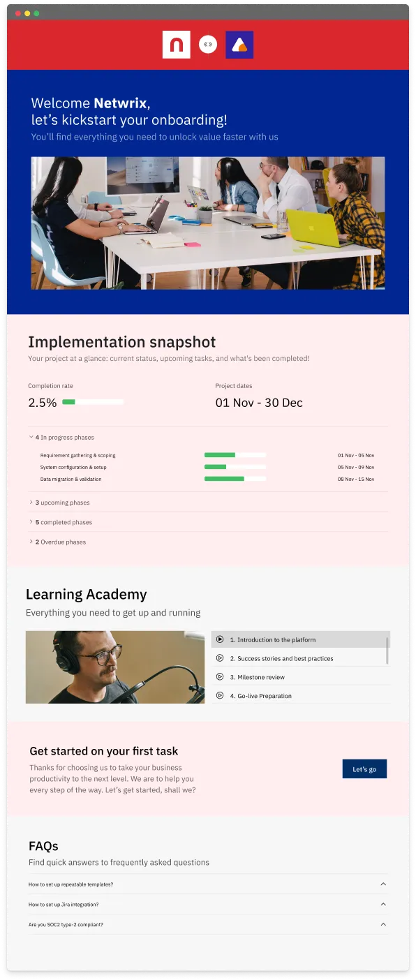 We see a really massive improvement in the number of accounts an implementation manager handles pre-Rocketlane and post-Rocketlane. In a short space of just two months, we’ve been able to accelerate time-to-value for our customers by 20%!”