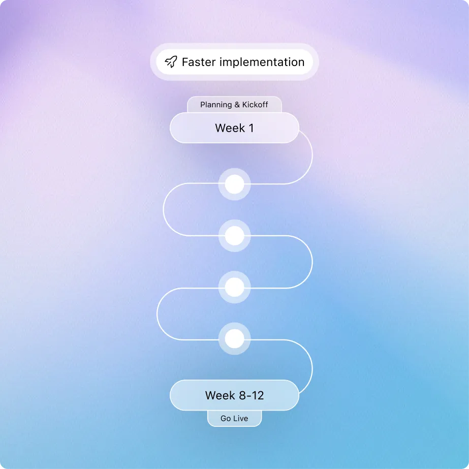 reduction in go-live time. Shrinking implementation time from 6+ months to just 30 days with Rocketlane.