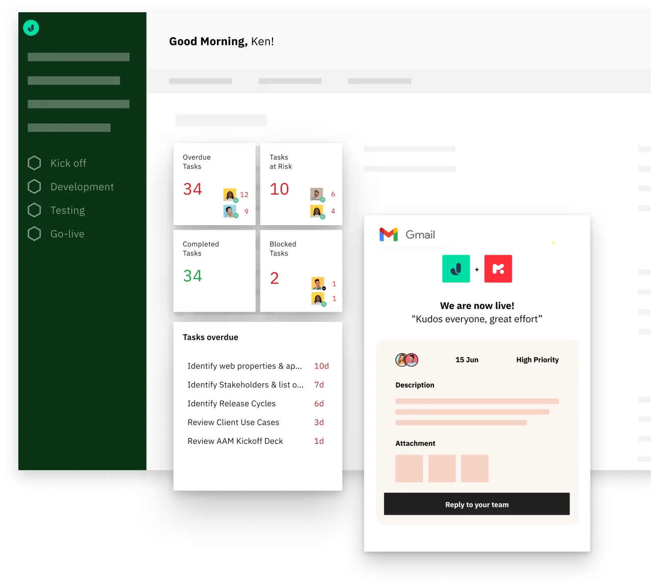 You can automate status updates so your customers stay informed minus the cumbersome email threads. Plus with the Rocketlane-Slack integration, project updates are pushed straight to a channel on your customers’ Slack workspace.